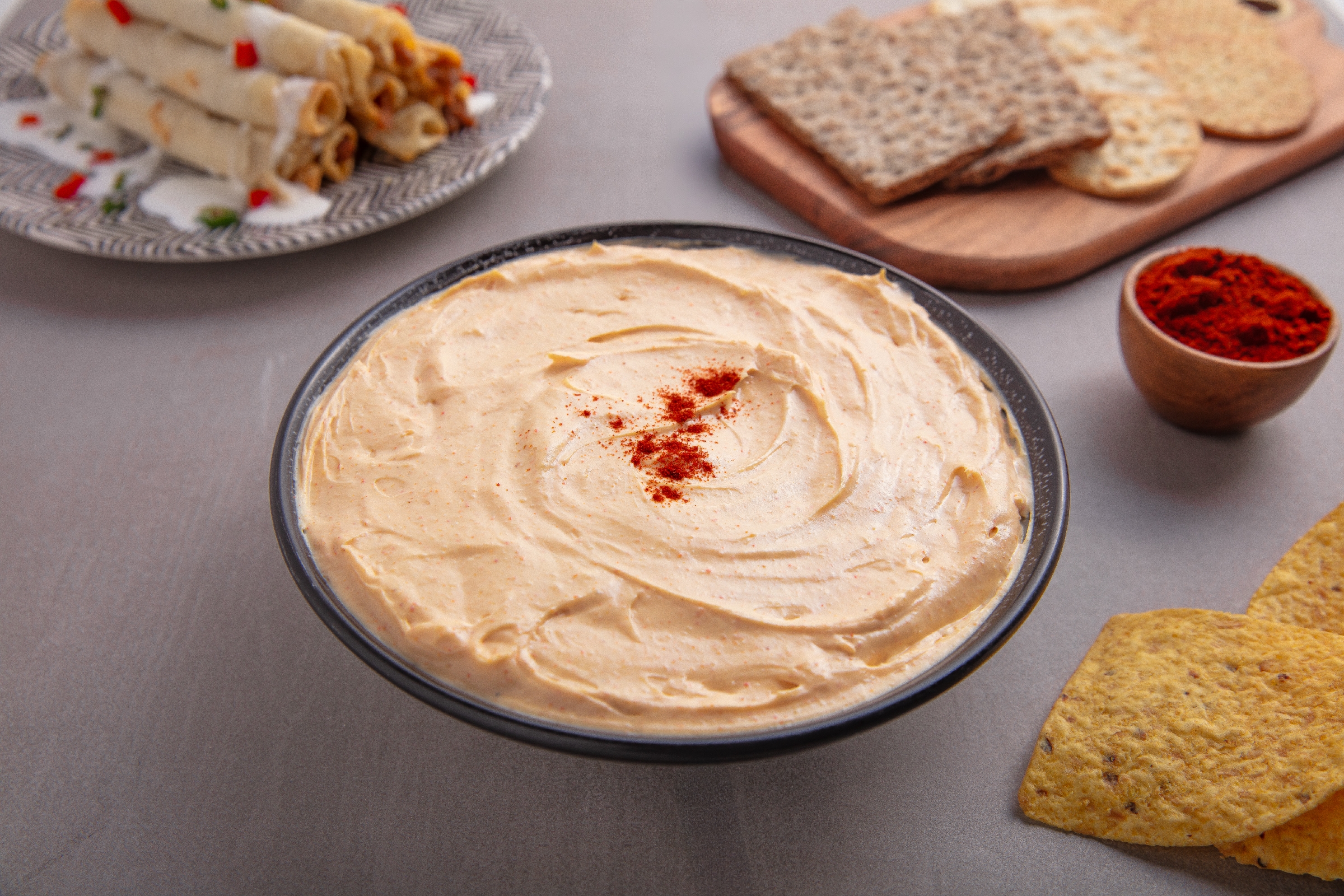 Cream cheese and sour cream are seasoned with smoked paprika, garlic, and onion for a bold, Southwestern-inspired flavor profile.